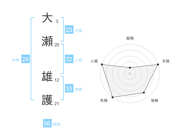 大瀬 雄護さんを姓名の画数から五運を鑑定
