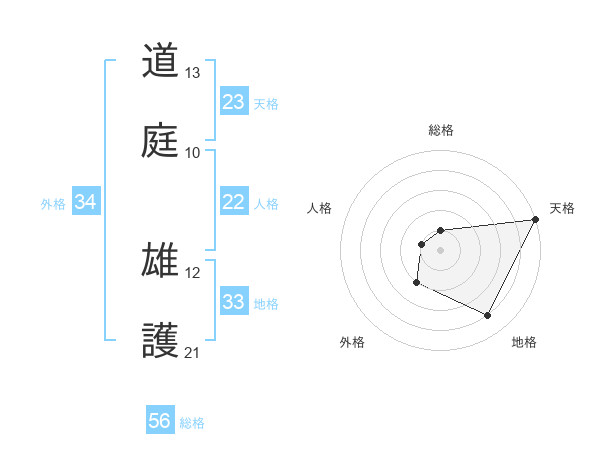 道庭 雄護さんを姓名の画数から五運を鑑定