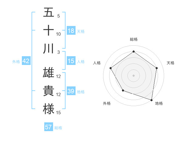 五十川 雄貴様さんの総格は57画の4点!