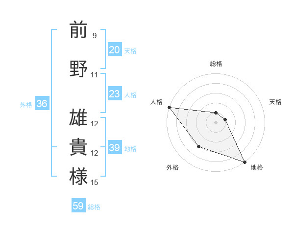 前野 雄貴様さんの外格は36画の3点!