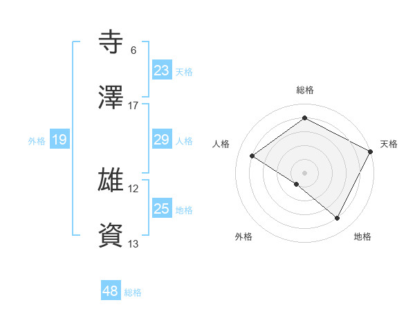 寺澤 雄資さんの天格は23画の5点!