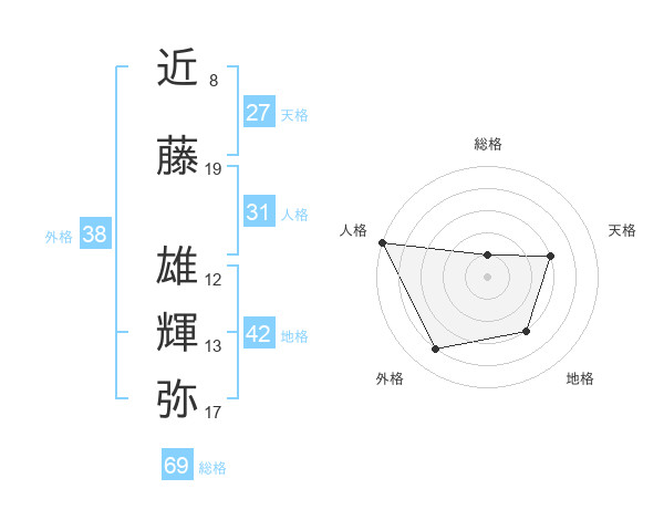 近藤 雄輝弥さんの総格は69画の1点!