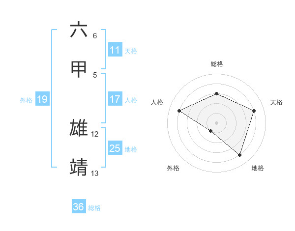 六甲 雄靖さんの地格は25画の4点!