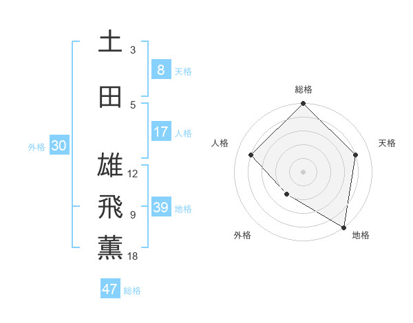 土田 雄飛薫さんを姓名の画数から五運を鑑定