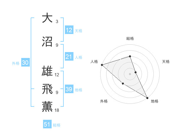 大沼 雄飛薫さんの総格は51画の3点