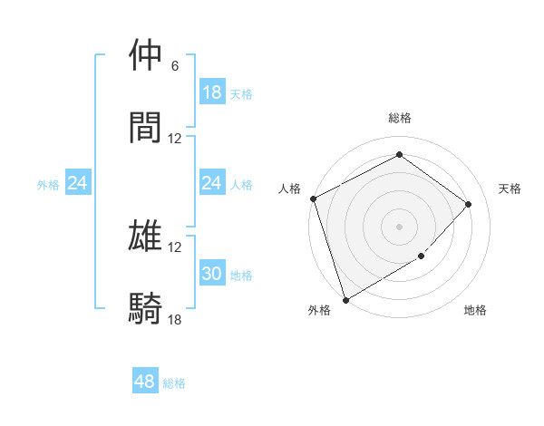 仲間 雄騎さんを姓名の画数から五運を鑑定