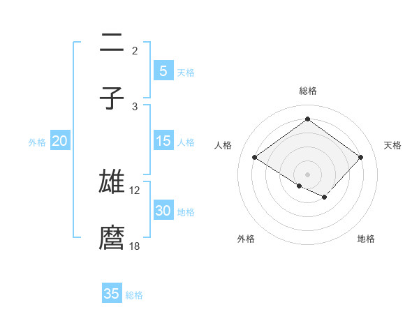 二子 雄麿さんを姓名の画数から五運を鑑定