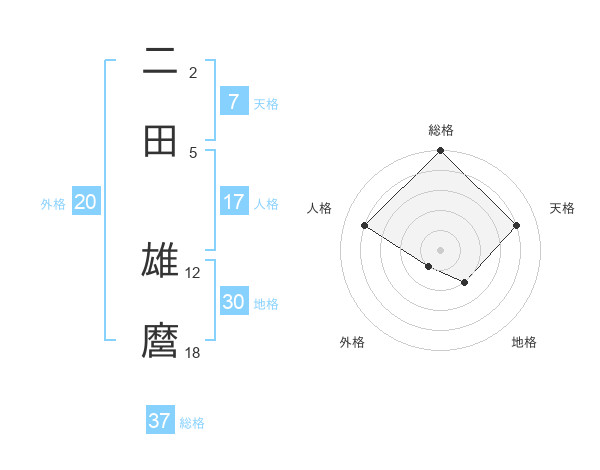 二田 雄麿さんの総格は37画の5点!