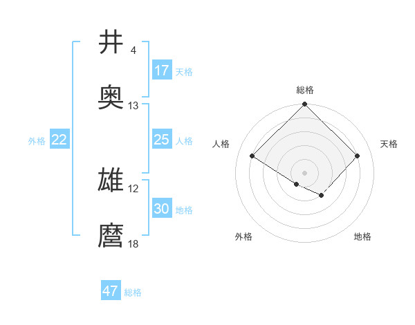 井奥 雄麿さんの総格は47画の5点!