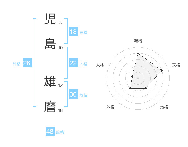 児島 雄麿さんの総格は48画の4点!