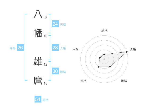 八幡 雄麿さんを姓名の画数から五運を鑑定