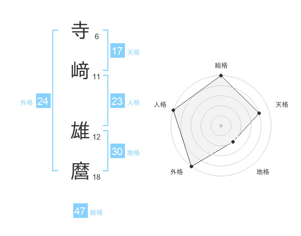 寺﨑 雄麿さんを姓名の画数から五運を鑑定