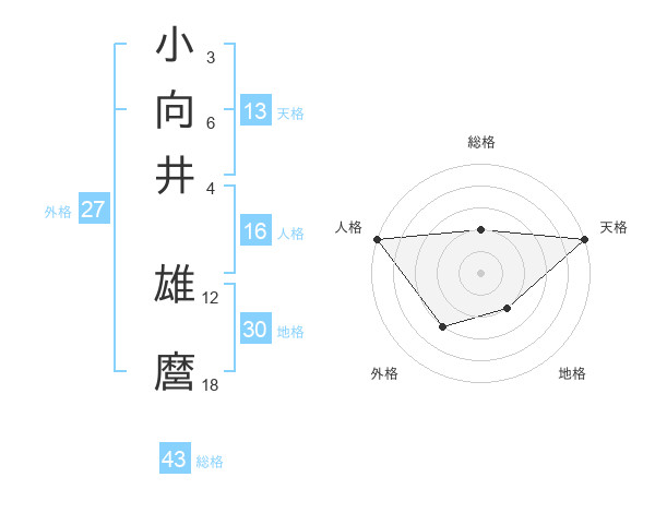 小向井 雄麿さんの天格は13画の5点!