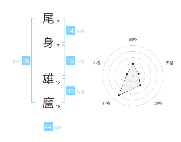尾身 雄麿さんの総格は44画の2点!