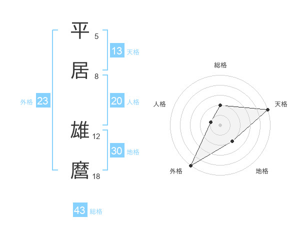 平居 雄麿さんの天格は13画の5点!