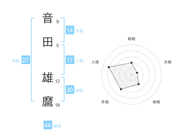 音田 雄麿さんを姓名の画数から五運を鑑定