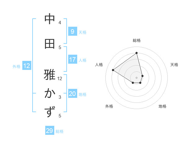 中田 雅かずさんを姓名の画数から五運を鑑定