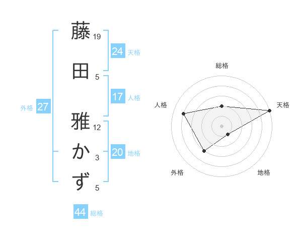 藤田 雅かずさんを姓名の画数から五運を鑑定