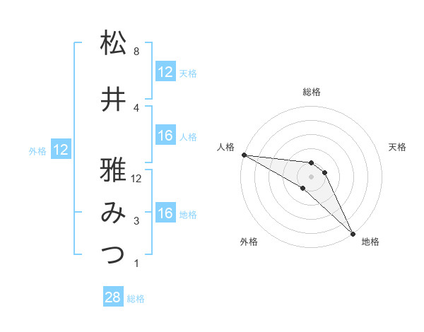 松井 雅みつさんの総格は28画の1点!