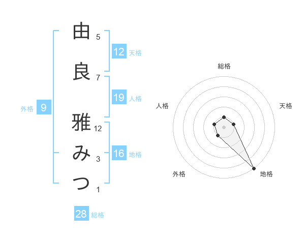 由良 雅みつさんの総格は28画の1点!