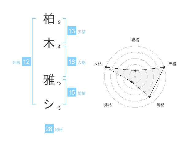 柏木 雅シさんを姓名の画数から五運を鑑定
