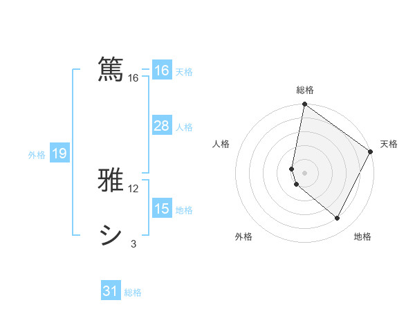 篤 雅シさんの総格は31画の5点!