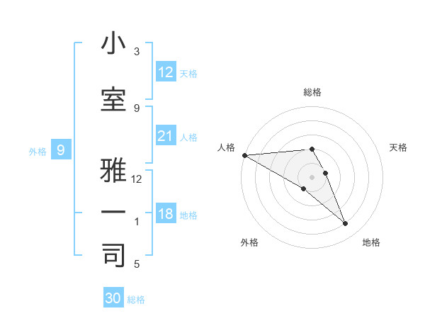 小室 雅一司さんの天格は12画の1点!