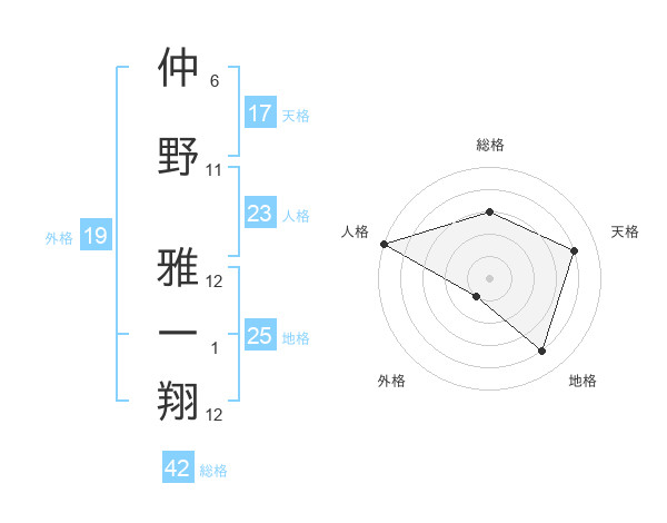 仲野 雅一翔さんの天格は17画の4点!