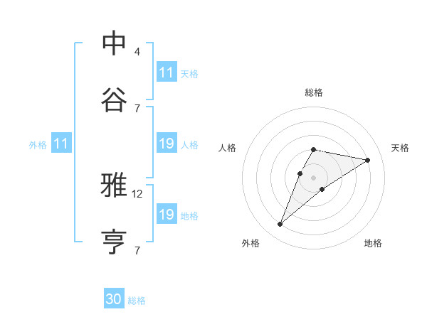 中谷 雅亨さんの天格は11画の4点!