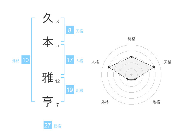 久本 雅亨さんの総格は27画の3点!