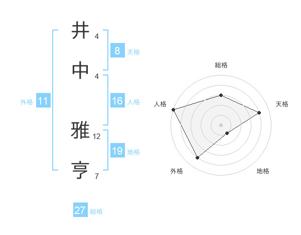 井中 雅亨さんを姓名の画数から五運を鑑定