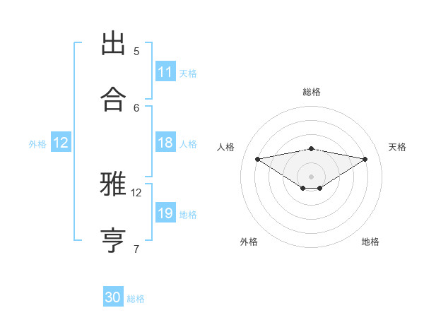 出合 雅亨さんを姓名の画数から五運を鑑定