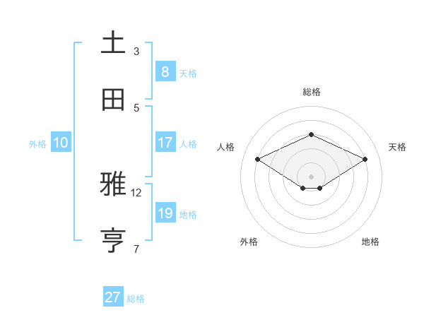 土田 雅亨さんの総格は27画の3点!