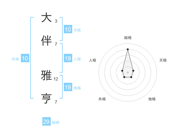 大伴 雅亨さんを姓名の画数から五運を鑑定