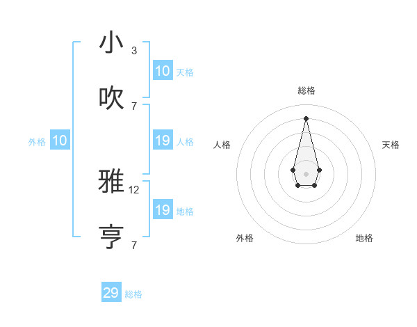 小吹 雅亨さんを姓名の画数から五運を鑑定