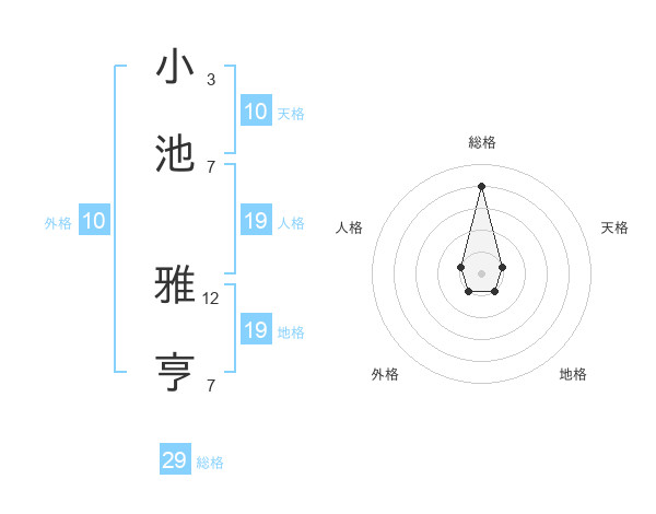 小池 雅亨さんを姓名の画数から五運を鑑定