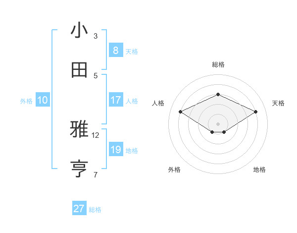 小田 雅亨さんの総格は27画の3点!