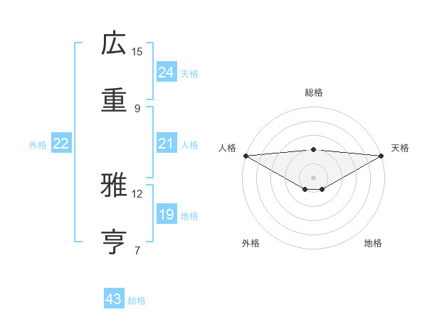 広重 雅亨さんの総格は43画の2点!