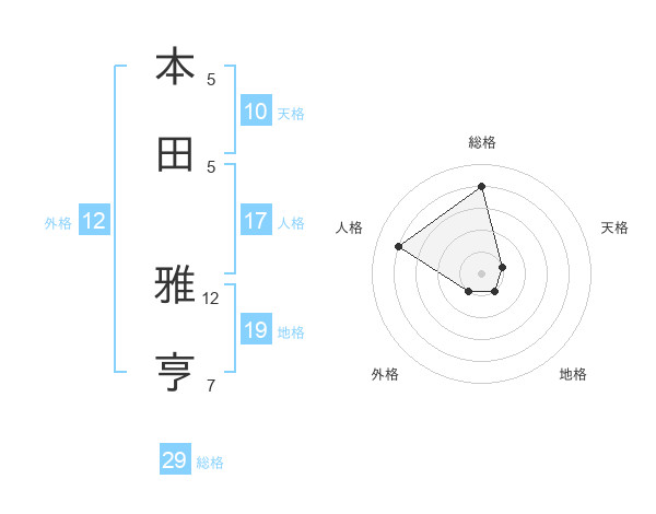 本田 雅亨さんの総格は29画の4点!