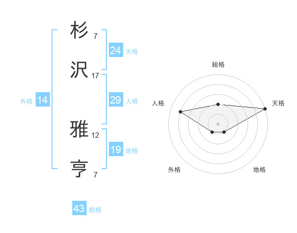 杉沢 雅亨さんの天格は24画の5点!