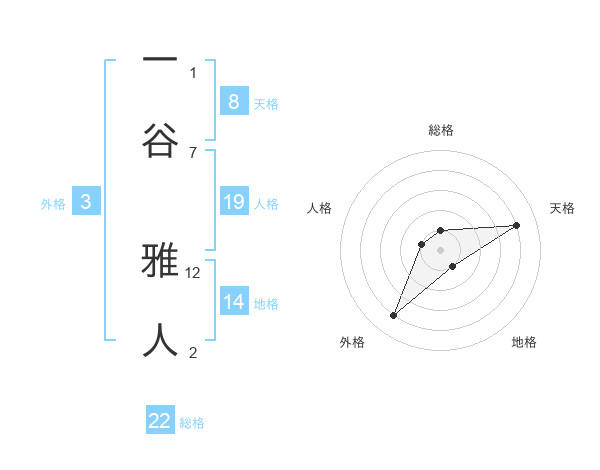 一谷 雅人さんの総格は22画の1点!