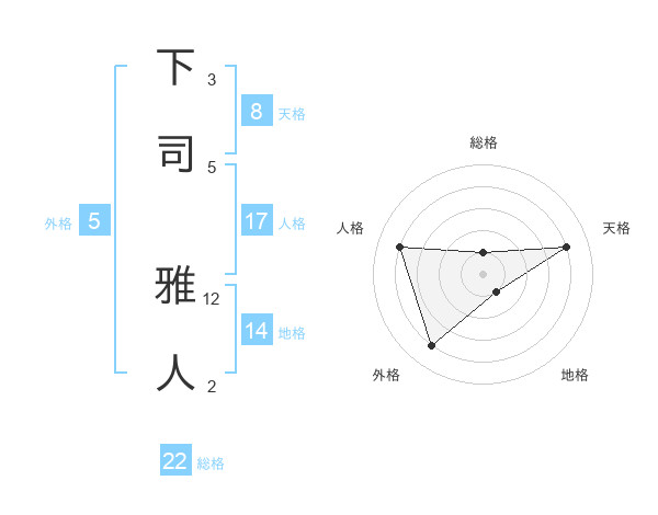 下司 雅人さんの総格は22画の1点!