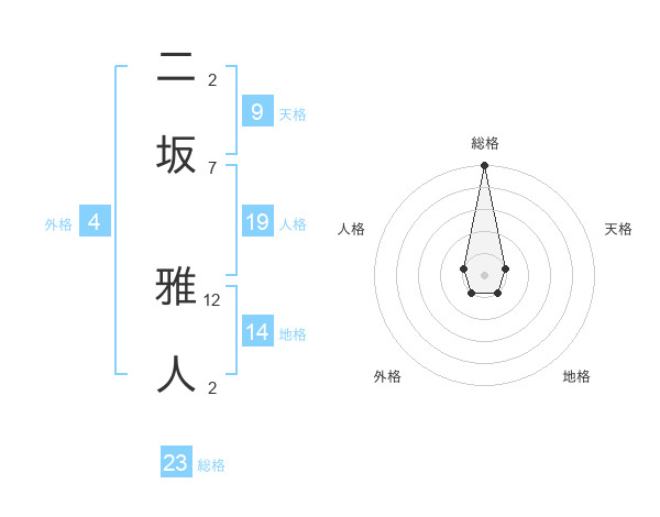 二坂 雅人さんを姓名の画数から五運を鑑定