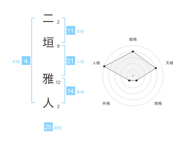 二垣 雅人さんの総格は25画の4点!