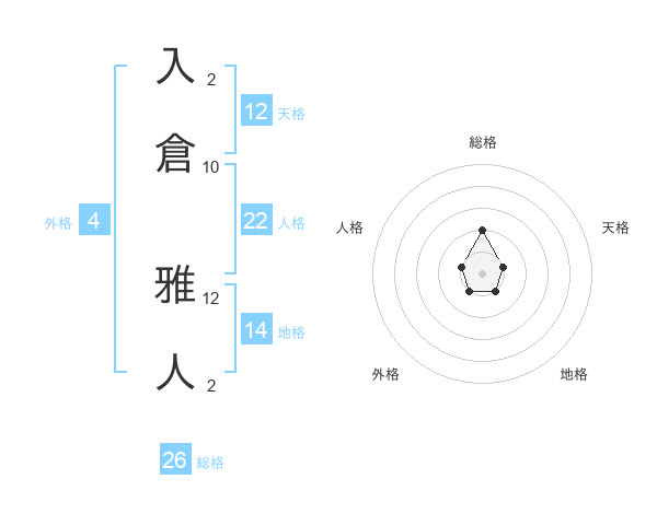 入倉 雅人さんの総格は26画の2点!