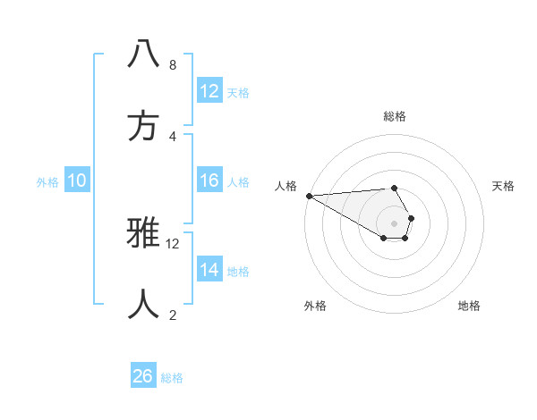 八方 雅人さんの総格は26画の2点!