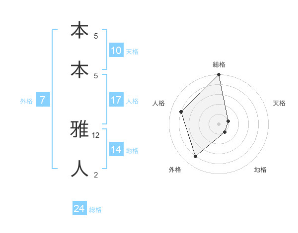 本本 雅人さんの総格は24画の5点!
