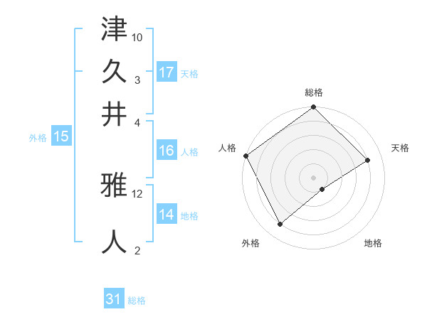 津久井 雅人さんを姓名の画数から五運を鑑定