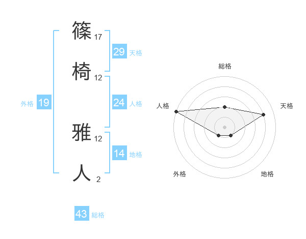 篠椅 雅人さんの総格は43画の2点!