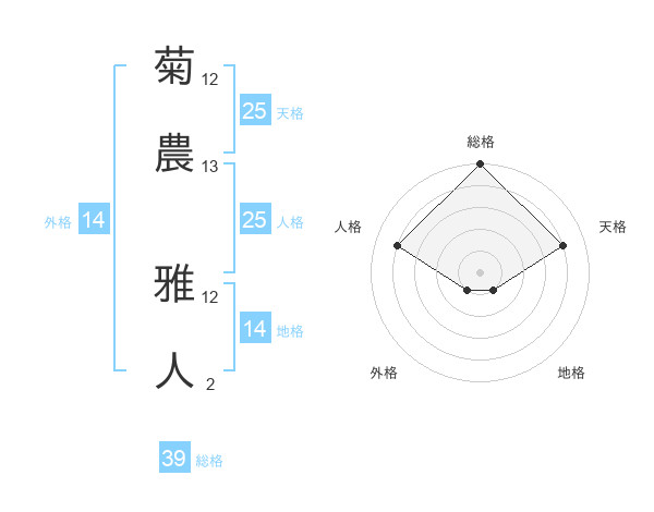 菊農 雅人さんを姓名の画数から五運を鑑定